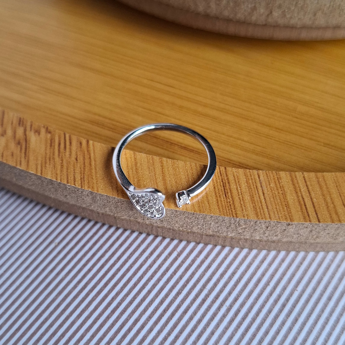 Anel Regulável Coração com Zircônias Folheado a Prata - PRATA