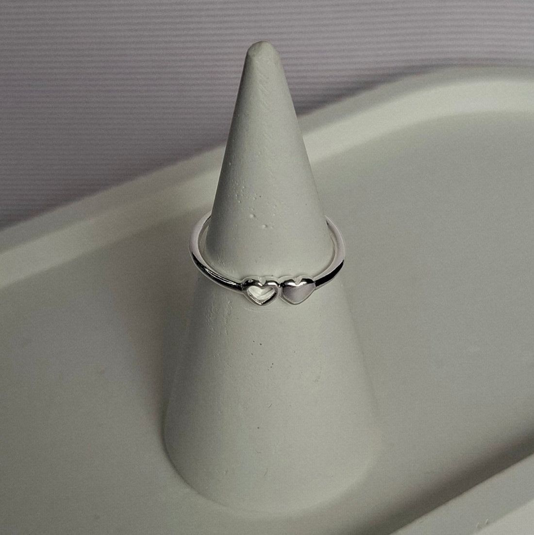 Anel Regulável Dois Corações Folheado a Prata – PRATA