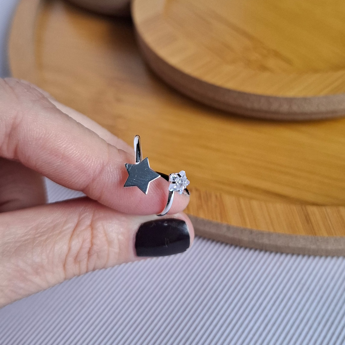 Anel Regulável Estrela com Ponto de Luz Folheado a Prata - PRATA
