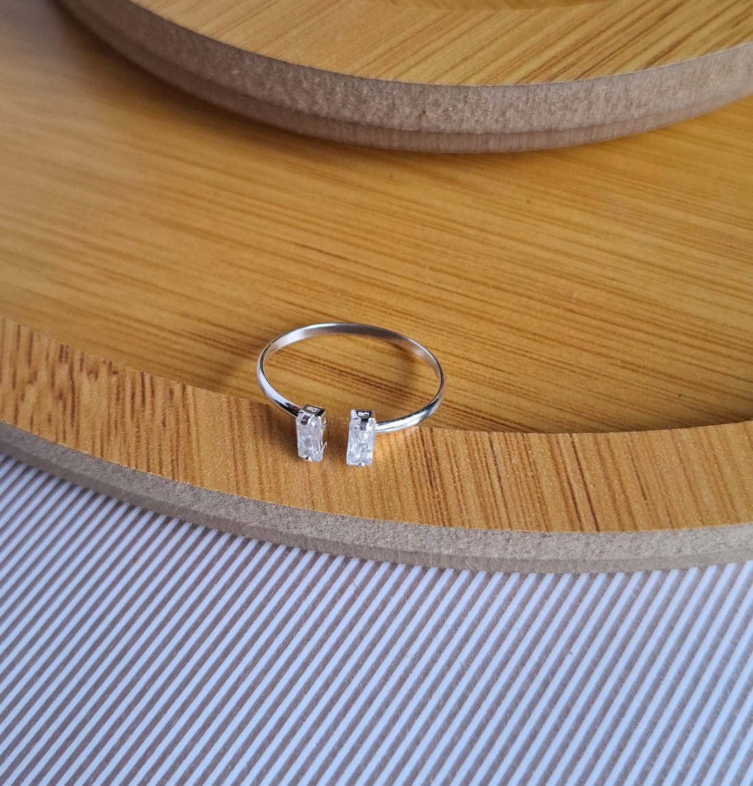 Anel Regulável Ponto de Luz Duplo Folheado a Prata - PRATA