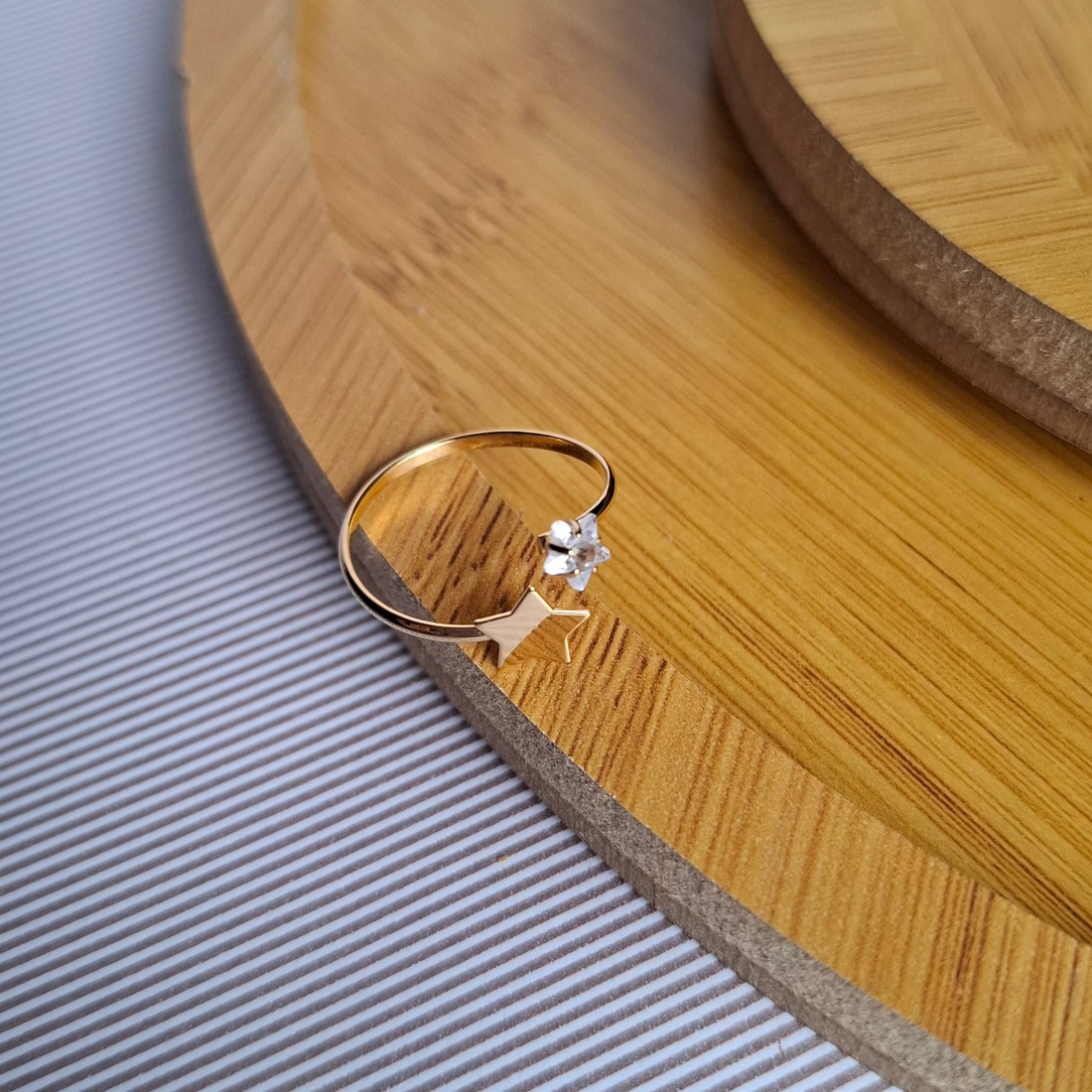 Anel Regulável Estrela com Ponto de Luz Folheado a Ouro 18K - OURO