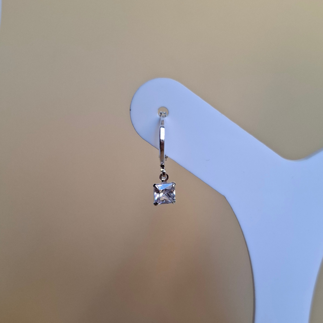 Brinco Argola Click Ponto de Luz Quadrado Folheado a Prata - PRATA