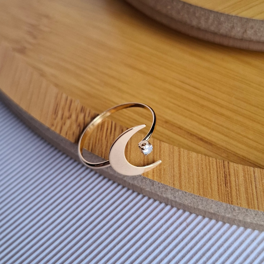 Anel Regulável Lua com Ponto de Luz Folheado a Ouro 18K - OURO