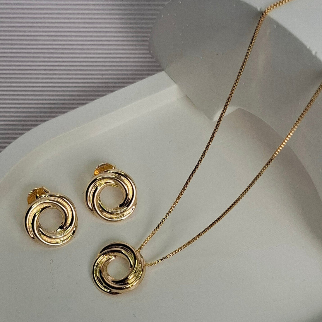 Conjunto Colar e Brinco Ninho Folheado a Ouro 18K – OURO