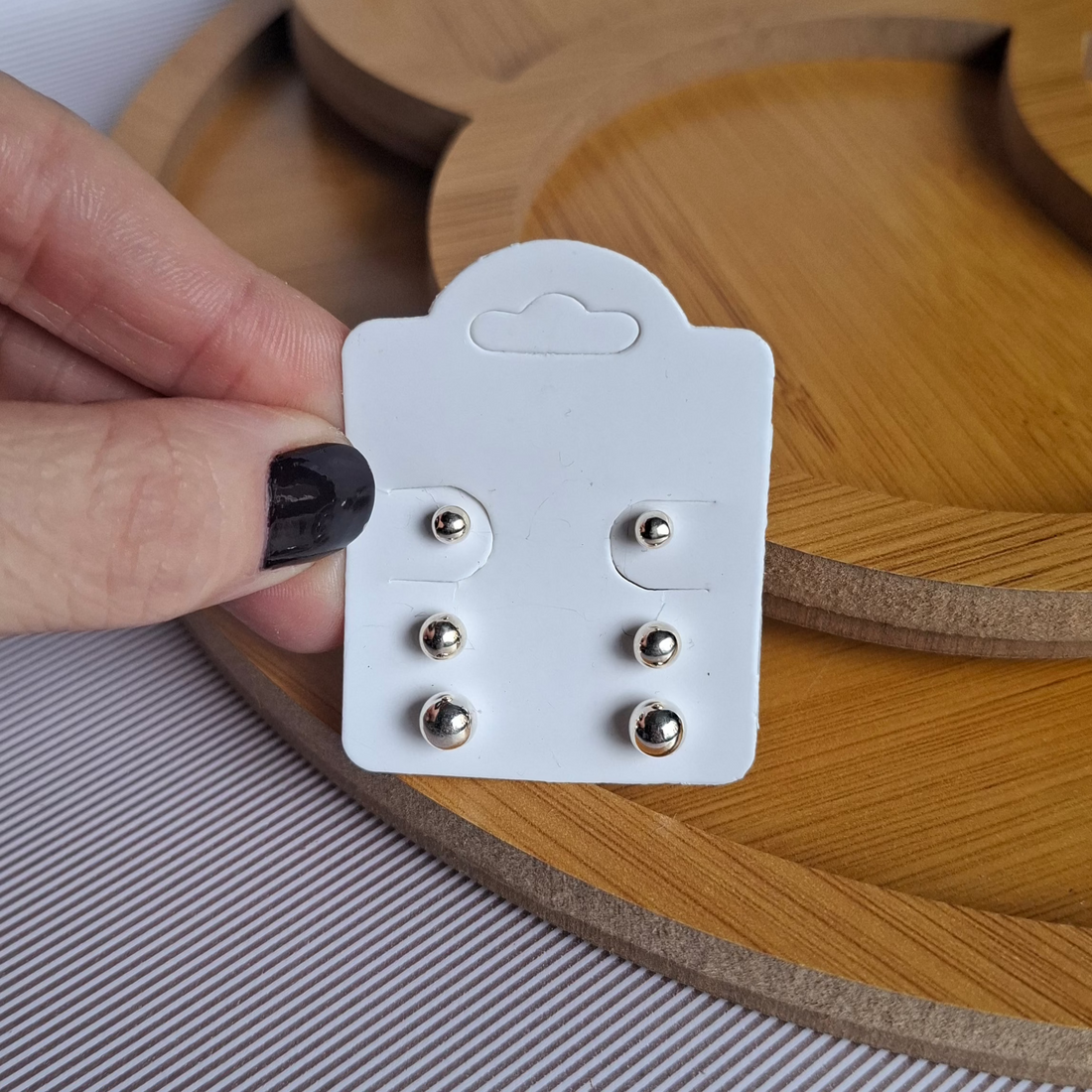 Trio de Brincos Bolinhas Liso Folheado a Prata - PRATA