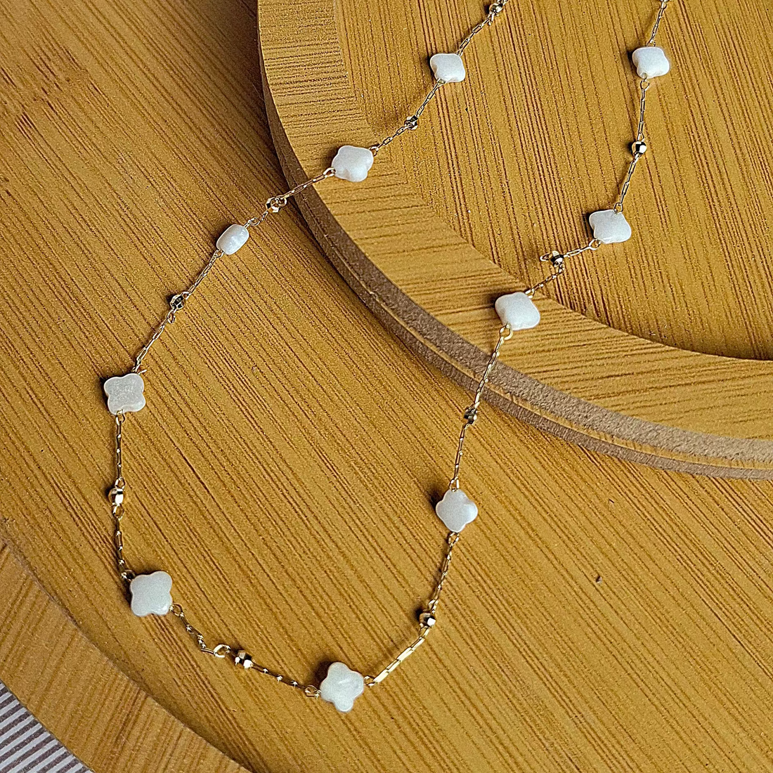 Colar Madre Pérola Trevo 6mm + Bolinha Folheado Ouro 18K - OURO