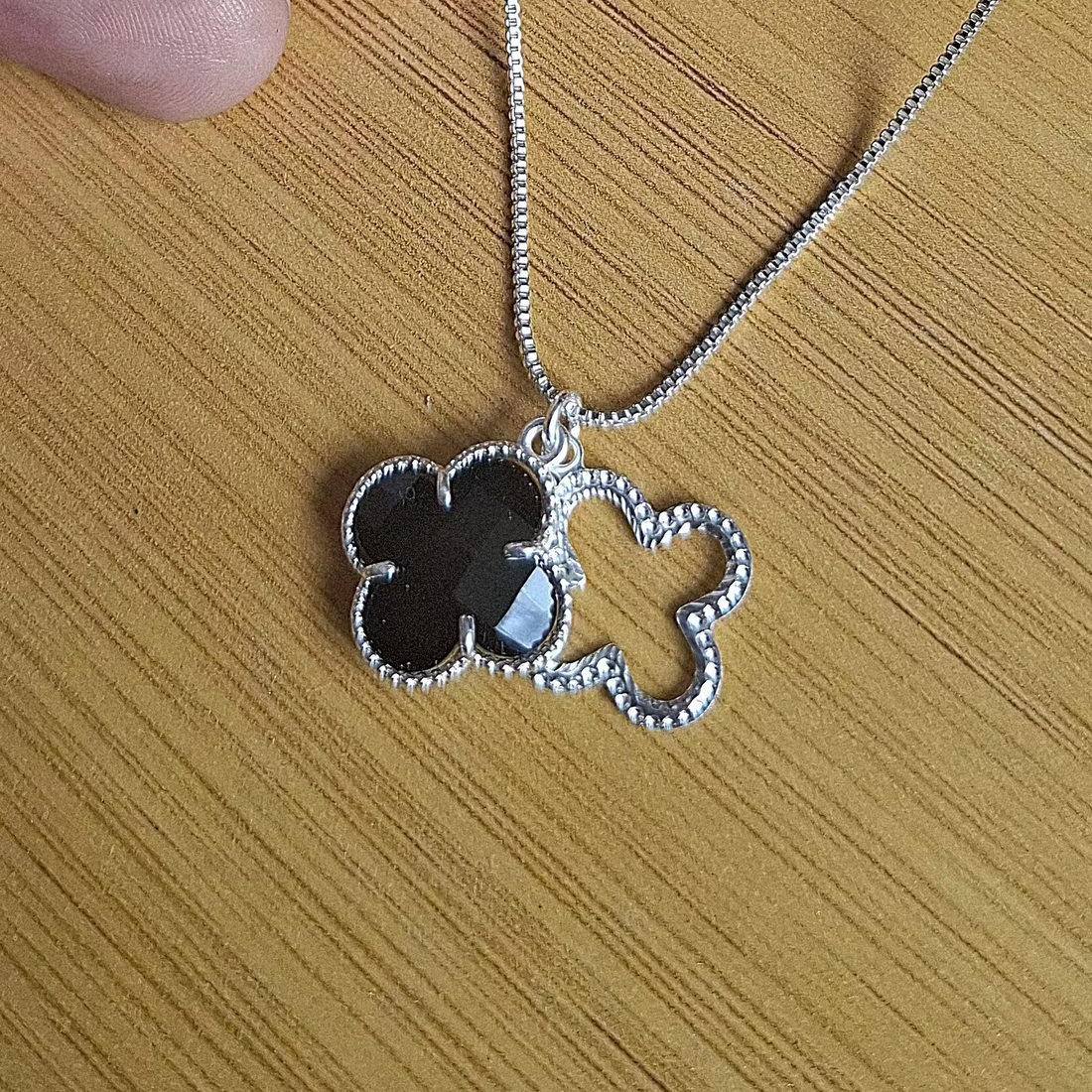 Colar Veneziana Trevo Preto Madre Pérola Folheado a Prata - PRATA