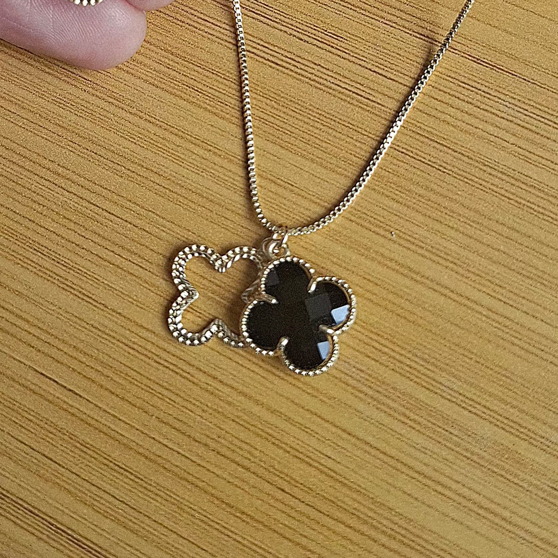 Colar Veneziana Trevo Preto Madre Pérola Folheado a Ouro 18K - OURO