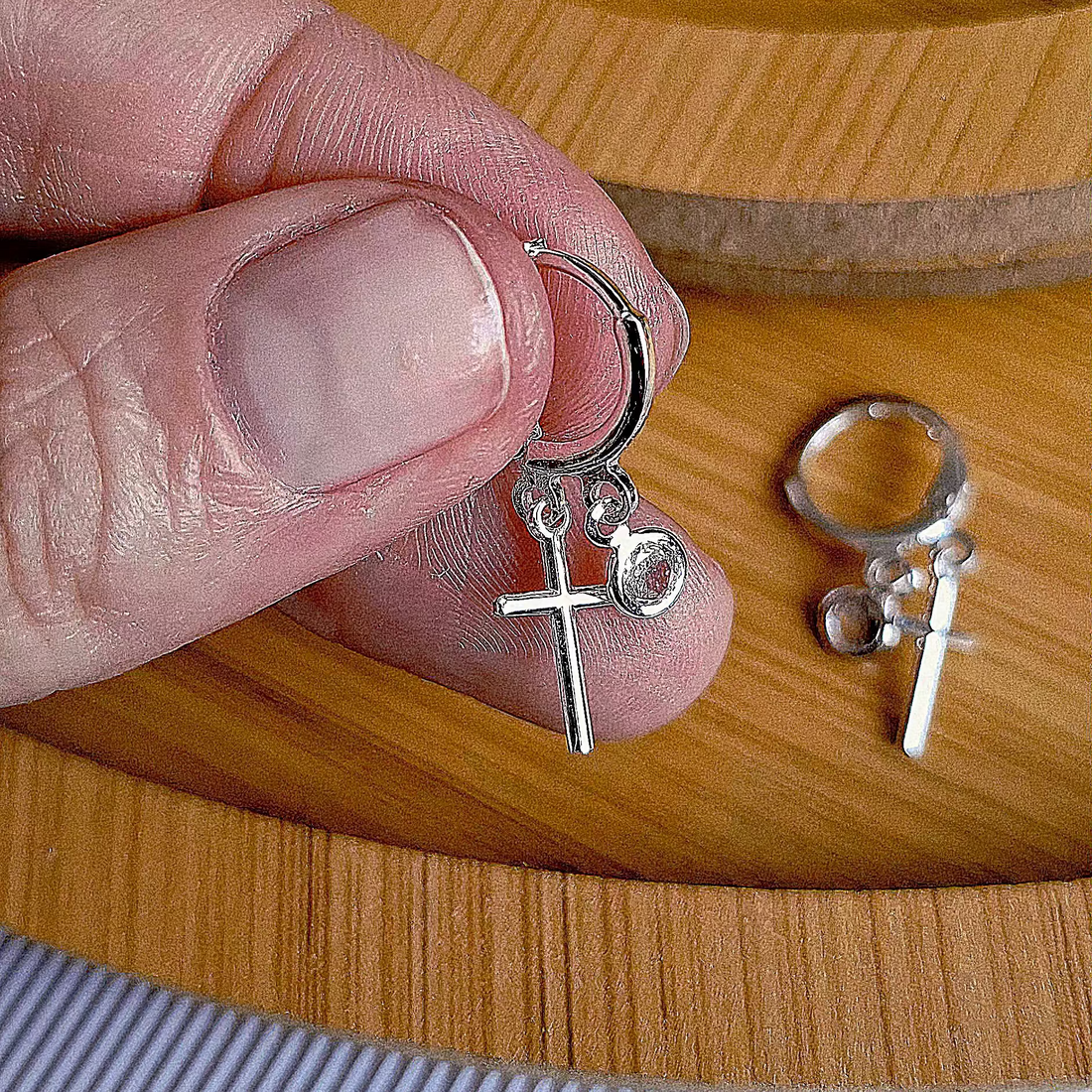 Brinco Argola Click Cruz e Cristal Folheado a Prata - PRATA