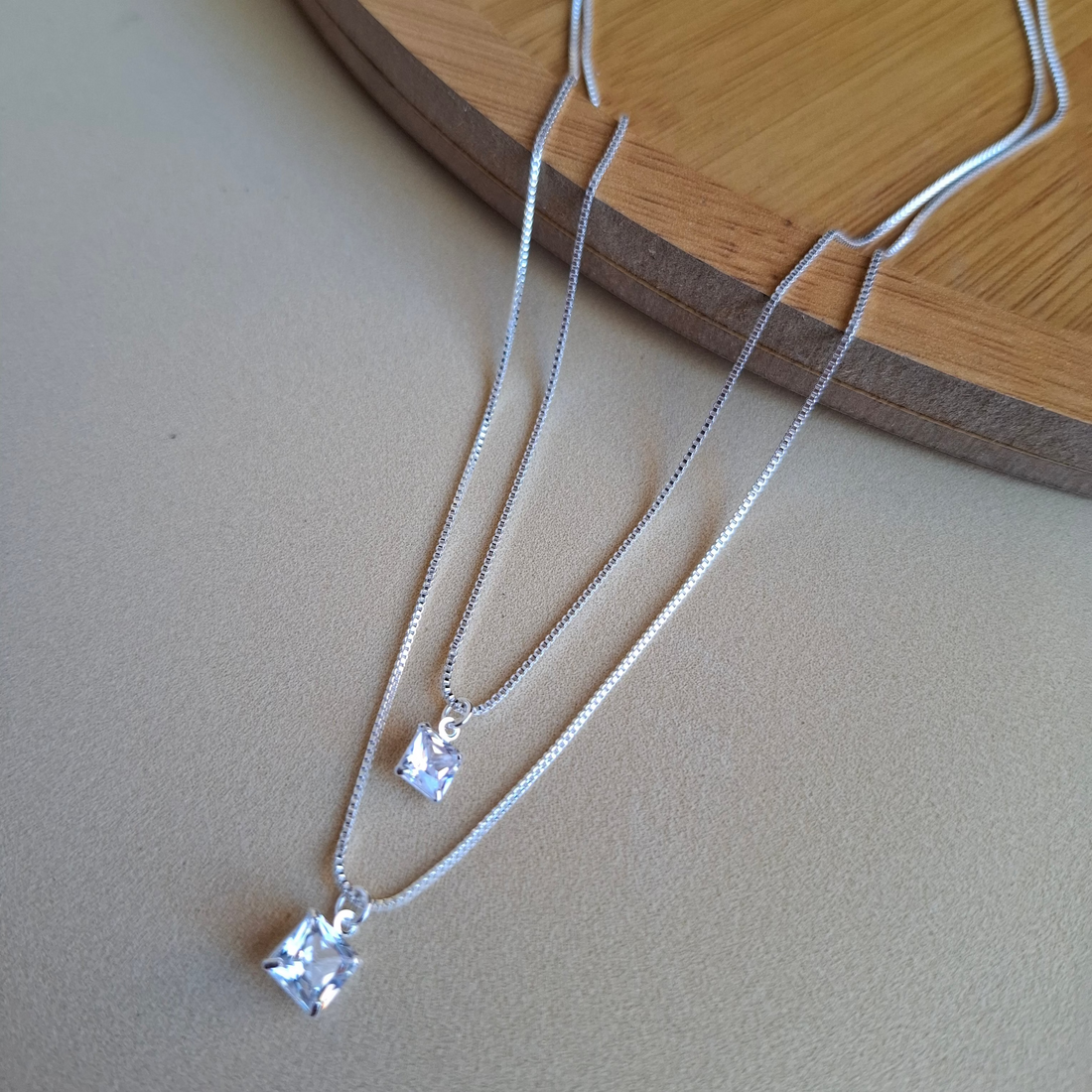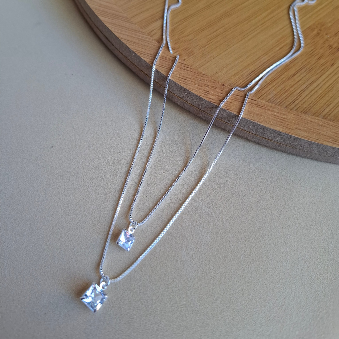 Colar Duplo Ponto de Luz Quadrado 45cm Folheado a Prata - PRATA