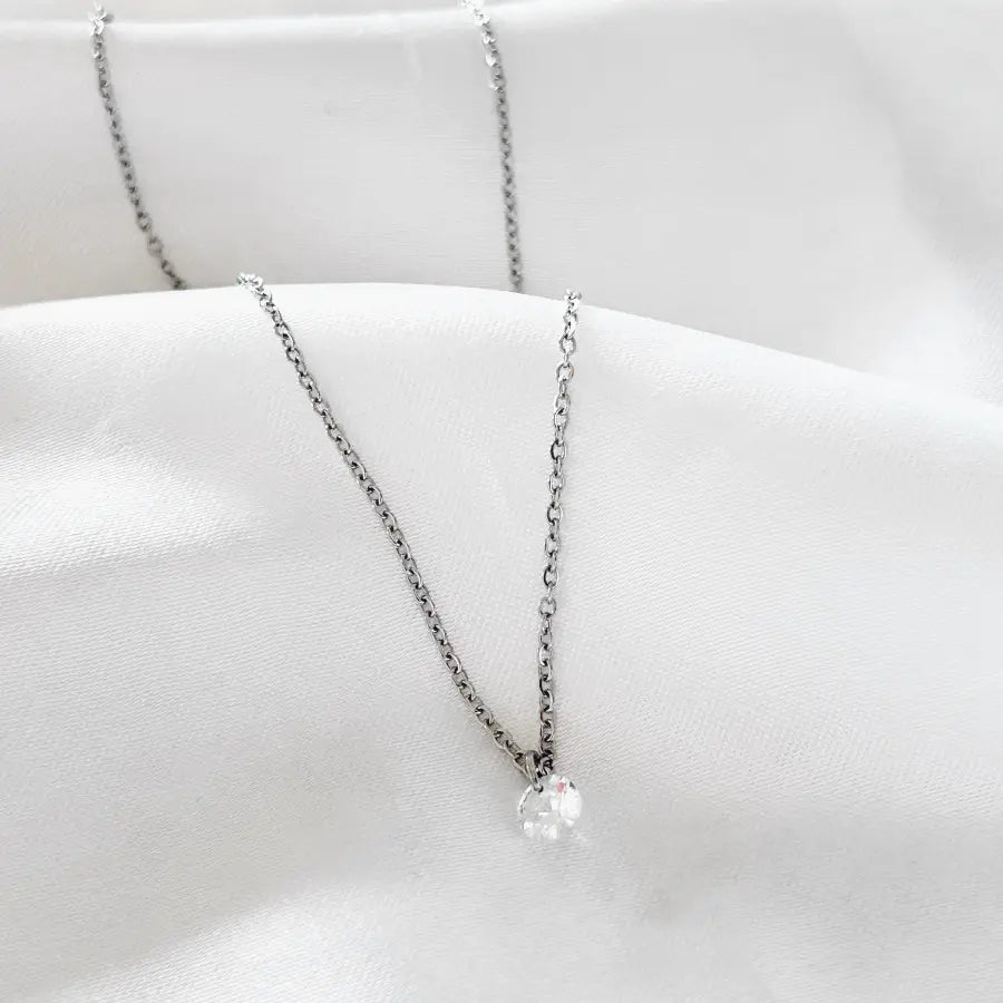 Colar Cadeado Pingente Zircônia Redonda 40CM + 5CM Extensor - AÇO INOX
