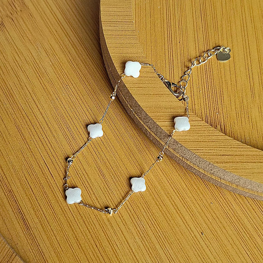 Pulseira Madre Pérola Trevo 6mm + Bolinha Folheado a Ouro 18K - OURO
