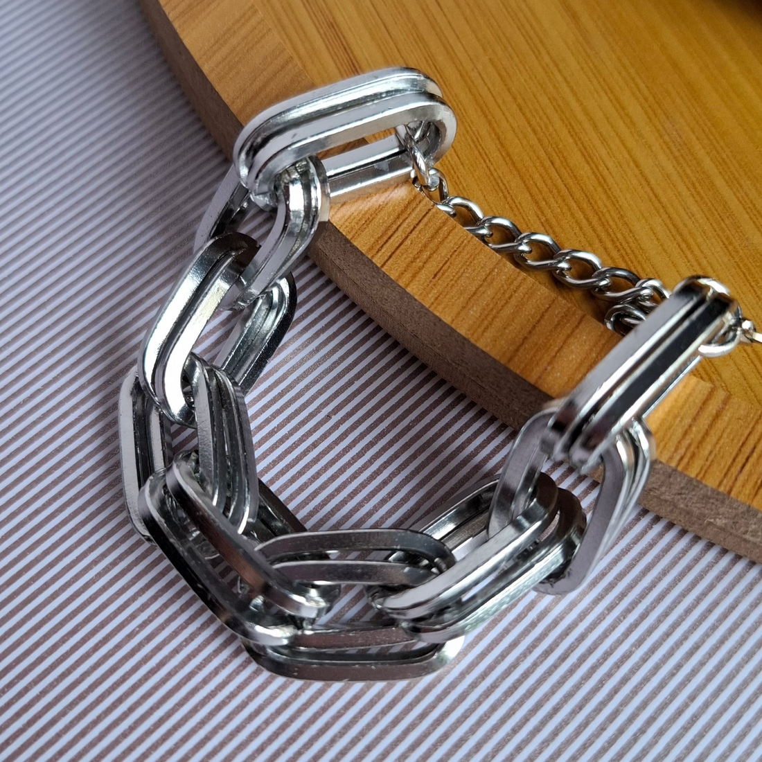 Pulseira Elos Duplos Maximalista Folheada a Prata - PRATA