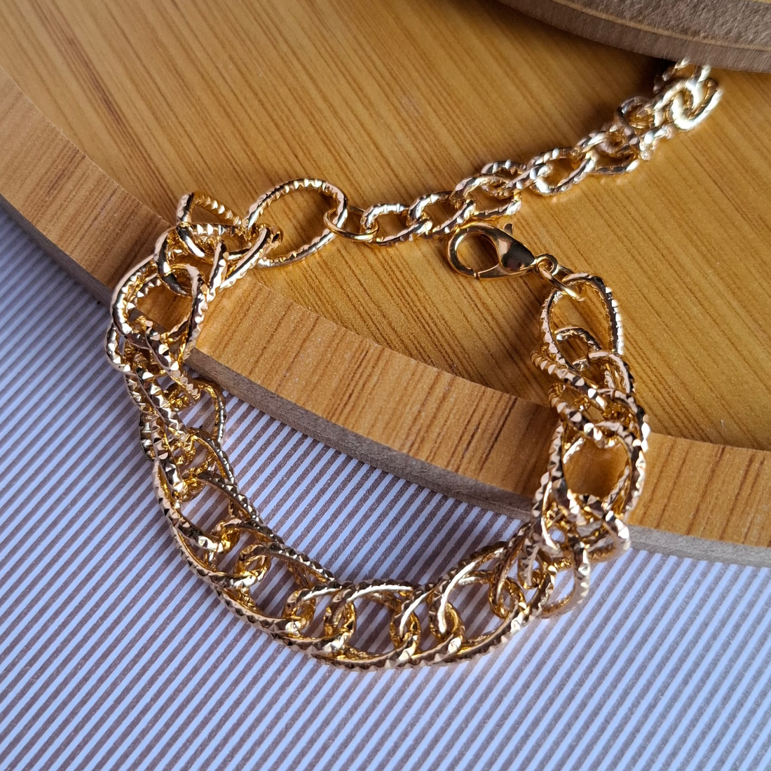 Pulseira Elos Duplos Maximalista Folheada a Ouro 18K - OURO