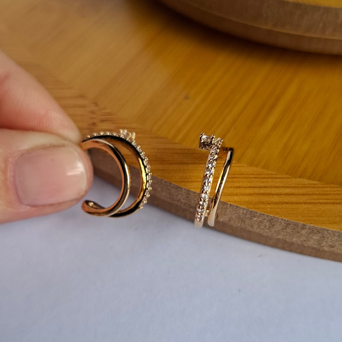Brinco Duplo Zircônias Folheado a Ouro 18K - OURO