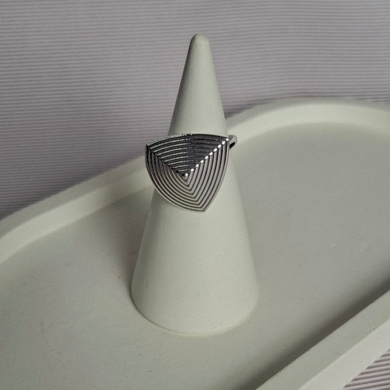 Anel Regulável Triângulo Riscado Folheado a Prata – PRATA