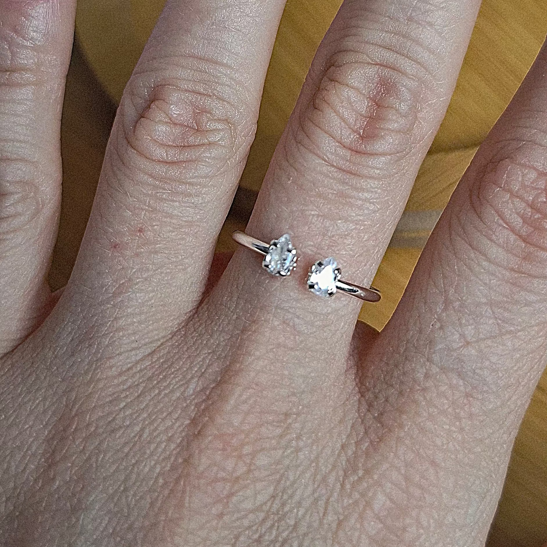 Anel Regulável Zircônias Cristal Gota 5MM Folheado a Prata - PRATA