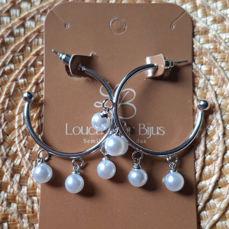 Brinco Argola com Pérolas 25MM Banho Prata - PRATA