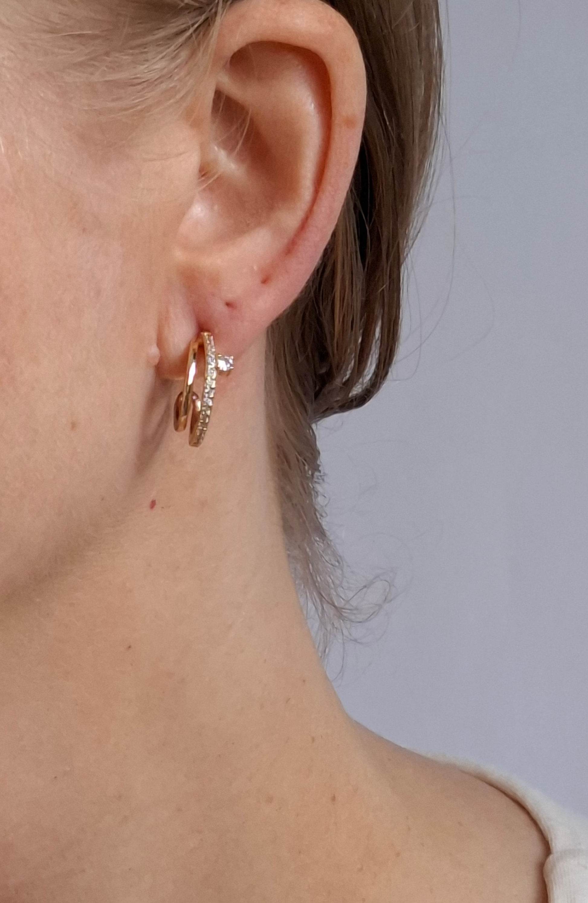 Brinco Duplo Zircônias Folheado a Ouro 18K - OURO