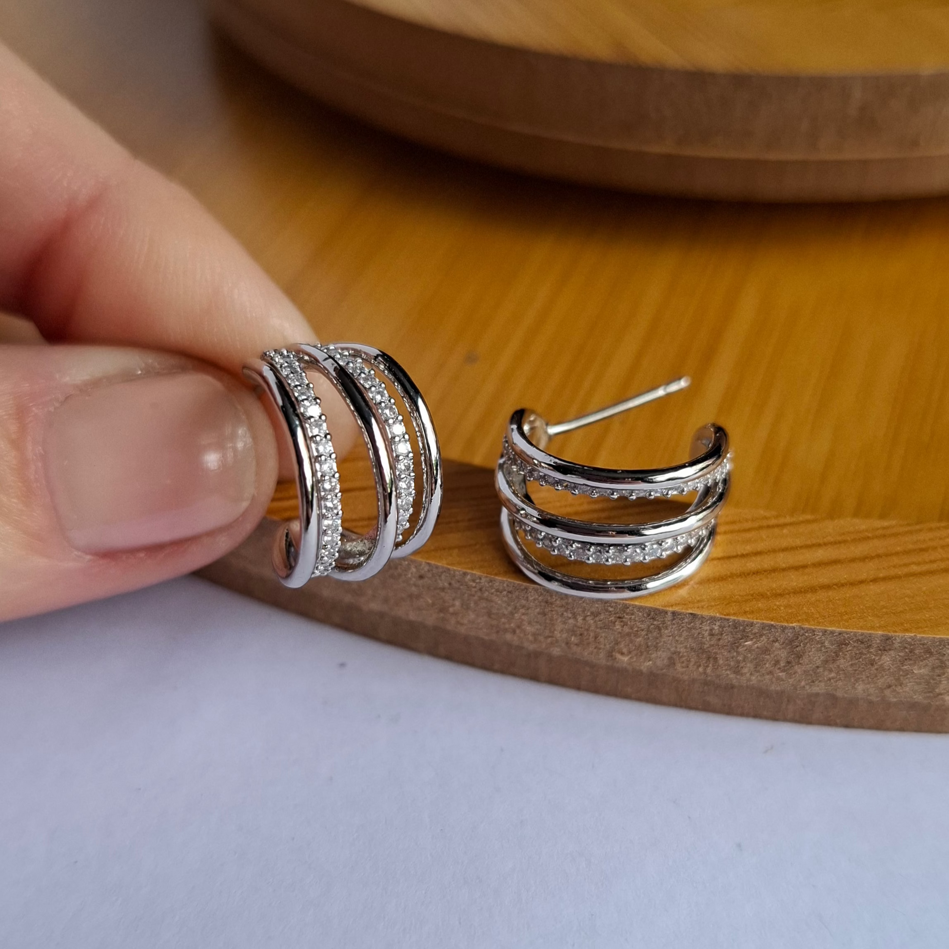 Brinco Zircônias Cravejadas Folheado a Prata - PRATA