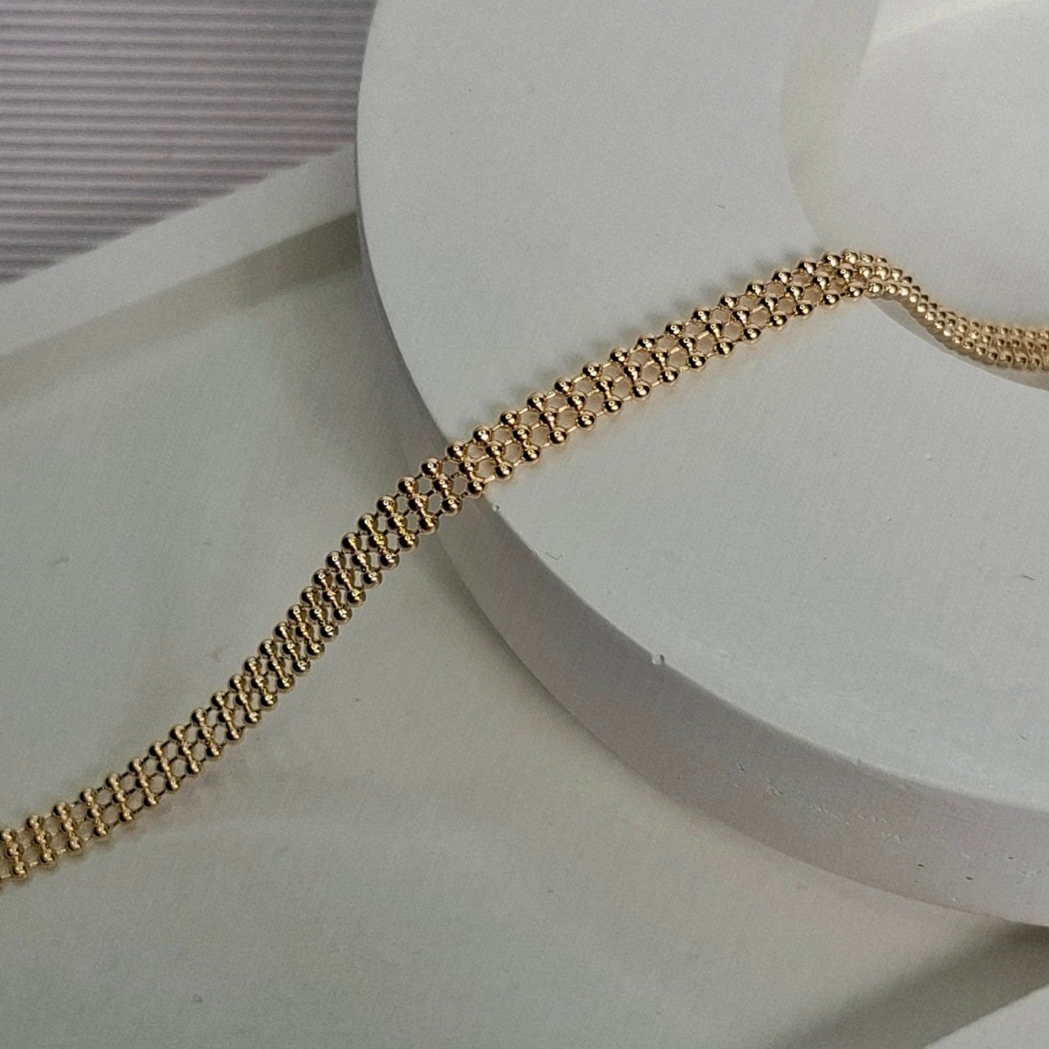 Colar Fio 3 Bolinhas 35cm+ 10cm Extensor Folheado a Ouro 18K - OURO