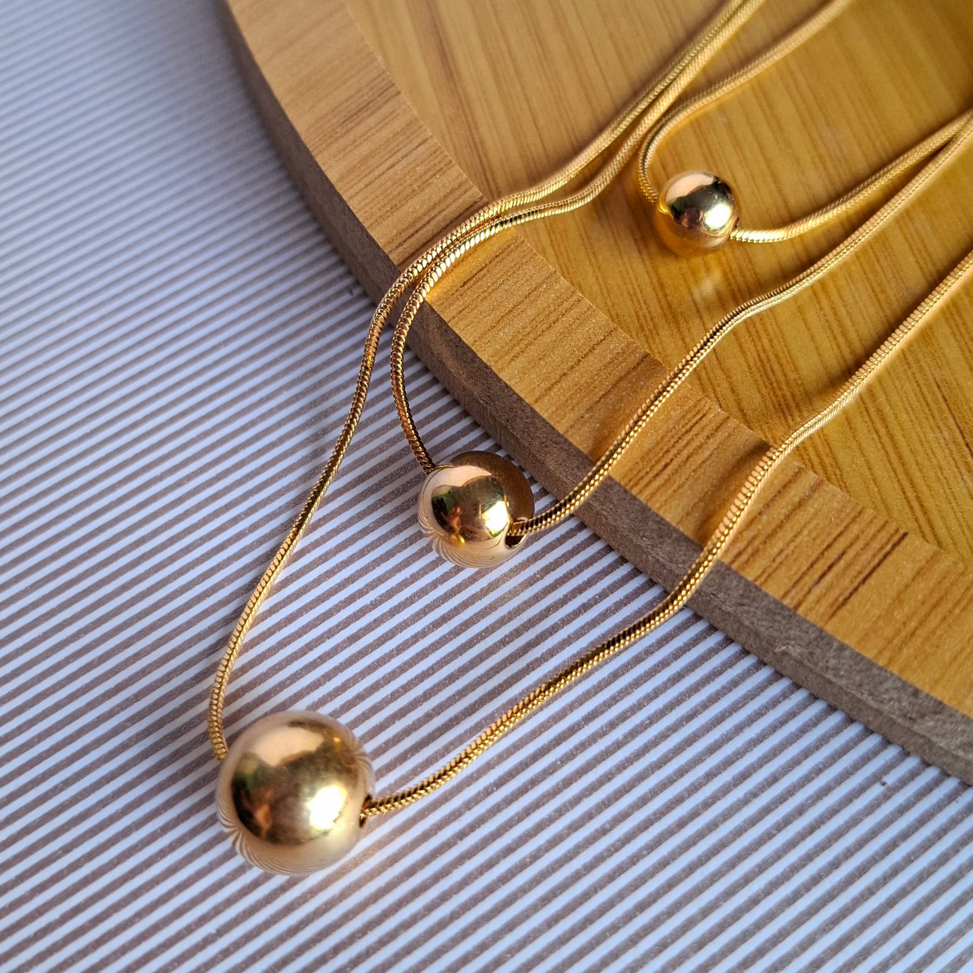 Destaque seu estilo com nossas semijoias de qualidade! Feitas com cuidado nos detalhes e com banhos que garantem durabilidade e brilho, o colar Triplo Esferas é o acessório perfeito quem busca modernidade e elegância, fazendo com que você se sinta especial em qualquer ocasião.