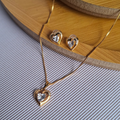 Conjunto Colar e Brinco Coração Cristal 45cm Folheado a Ouro 18K - OURO