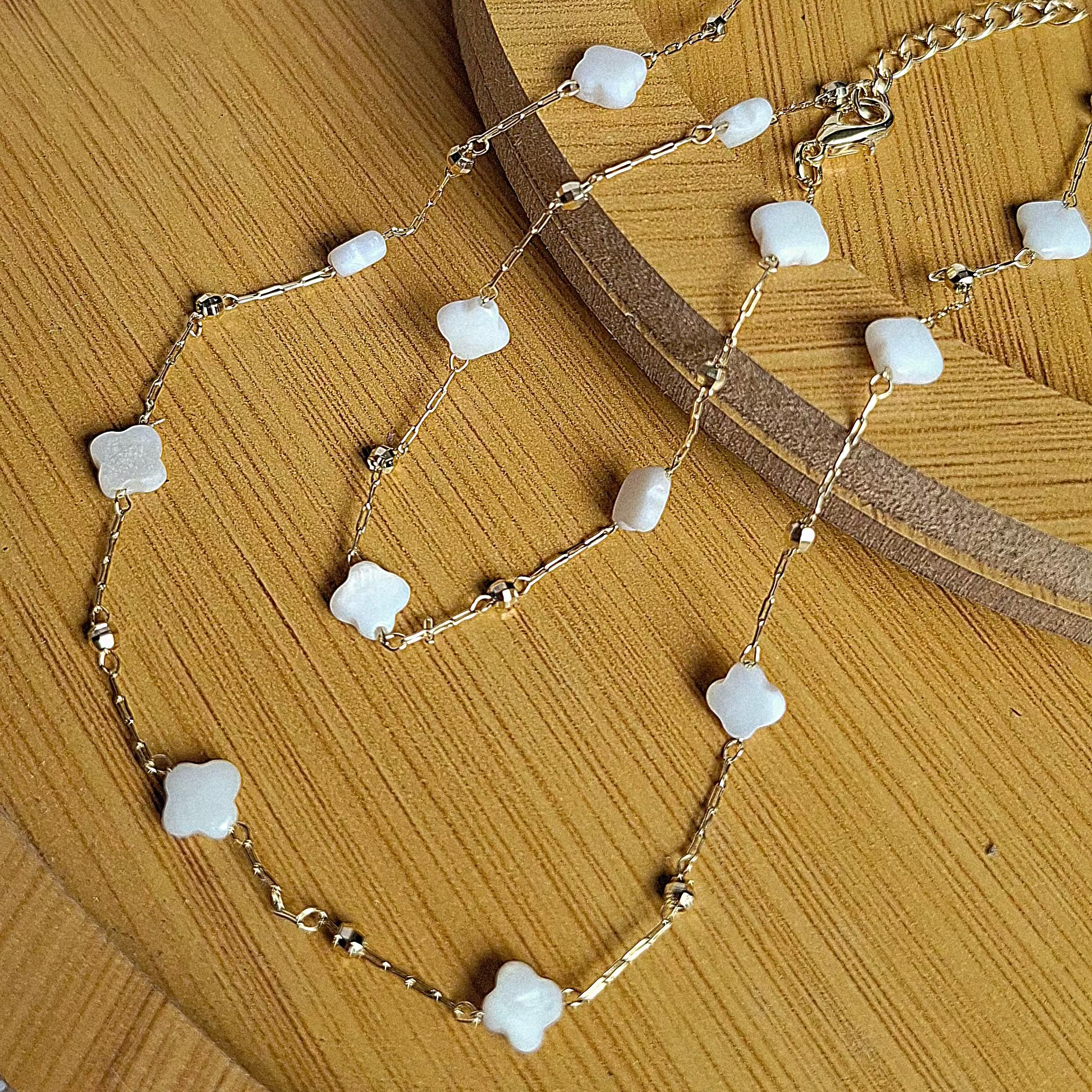 Pulseira Madre Pérola Trevo 6mm + Bolinha Folheado a Ouro 18K - OURO